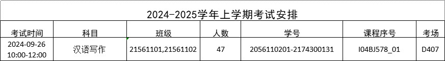 2024-2025学年第一学期《汉语写作》考试安排