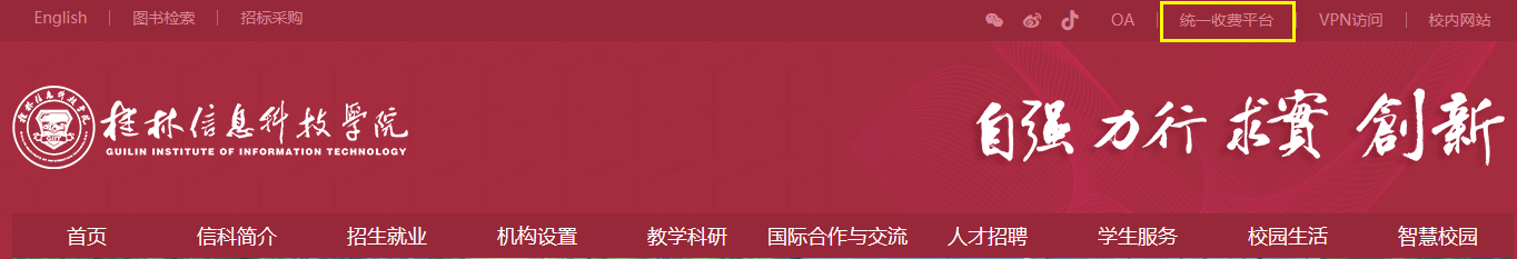 第一步:从学校官方主页(http:)右上角点击“统一收费平台”链接进入,进行缴费。