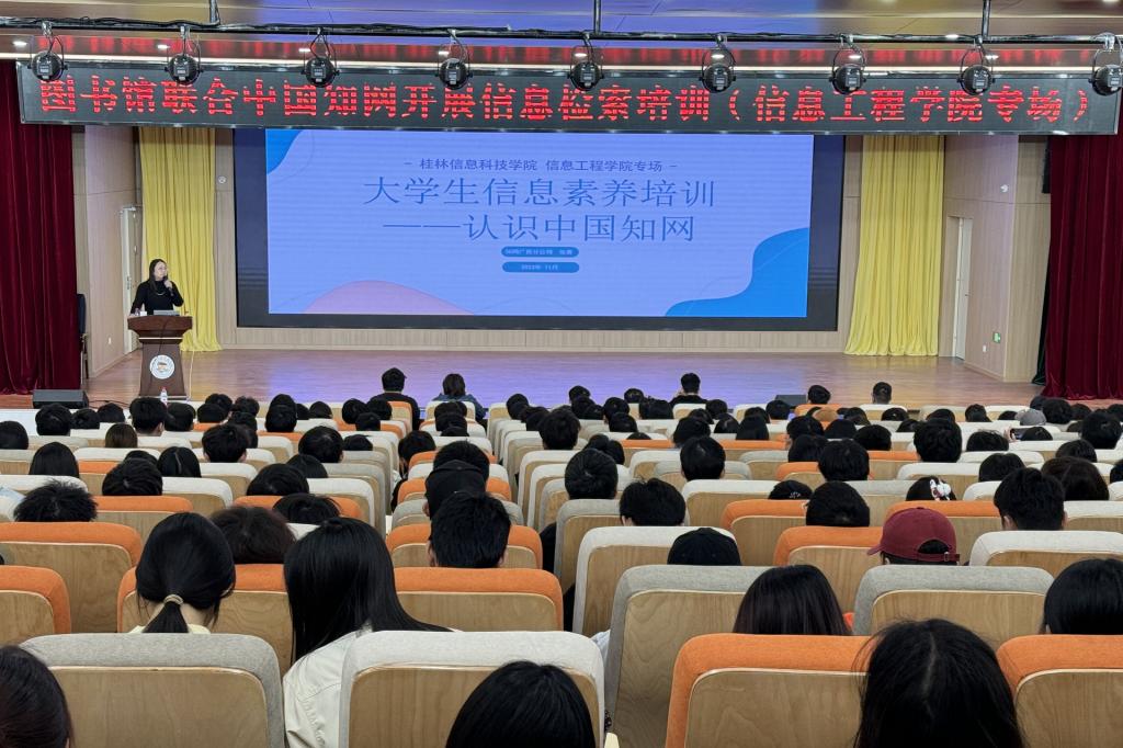 11月22日下午,由图书馆联合中国知网为信息工程学院21级专升本同学举办的专题讲座“中国知网信息素养培训”在F107报告厅顺利举行。参会师生约三百九十人,本次讲座由中国知网张菁老师主讲。