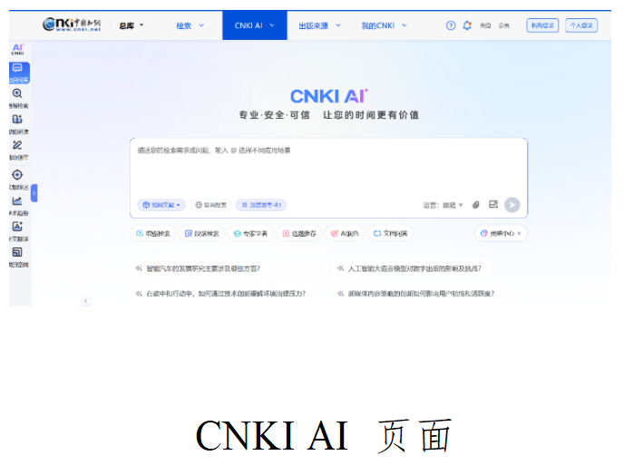 CNKI(中国知网) AI,是中国知网全面拥抱AI,赋能知识服务的全新探索,是推进问答式增强检索和生成式知识服务的场景实践。平台基于AI技术驱动的专业知识+深度思考、可信增强+可控生成的智能化服务,全面融合AI学术研究助手和AI增强检索,理解更加精准全面,解答更有专业深度,构建人工智能时代学术研究、科技创新、科学决策、全民阅读和人才培养的新范式。