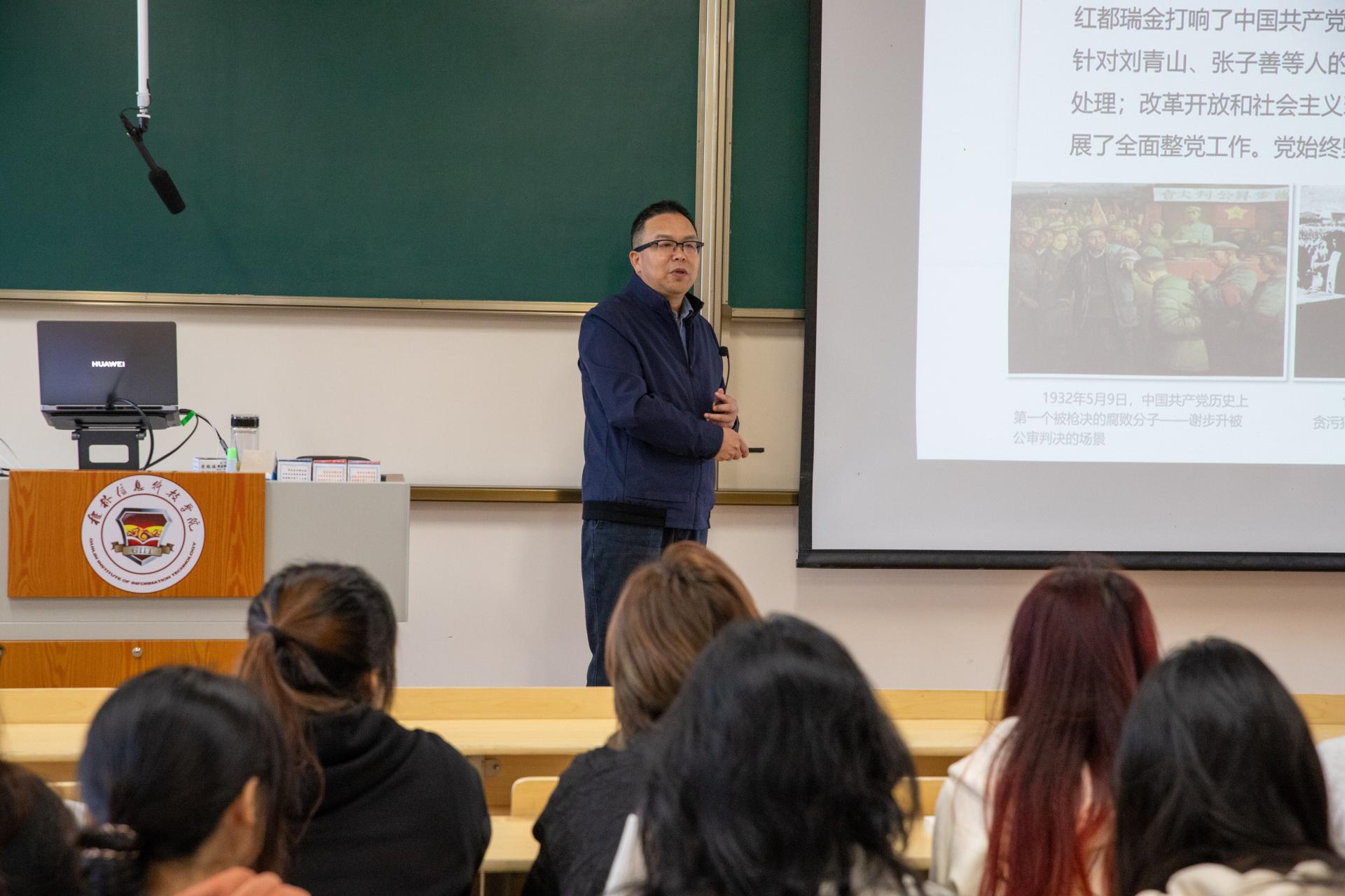 甘书记围绕“全面从严治党”这一专题进行了深入讲授。课程伊始,甘书记便以管党治党的生动真实案例为切入点,旨在激发学生对全面从严治党的思想认识与兴趣。随后,在课程中,甘书记从“全面从严治党是新时代党的建设的鲜明主题”、“以政治建设为统领深入推进党的建设”、“坚定不移推进反腐败斗争”、“建设长期执政的马克思主义政党”四个方面展开教学,详细阐释了全面从严治党的深刻内涵与具体要求,并结合当前复杂多变的严峻形势,深入剖析了新时代背景下全面从严治党的重要性和紧迫性。