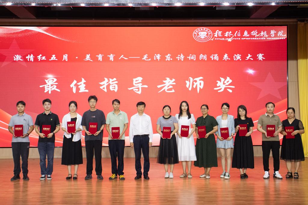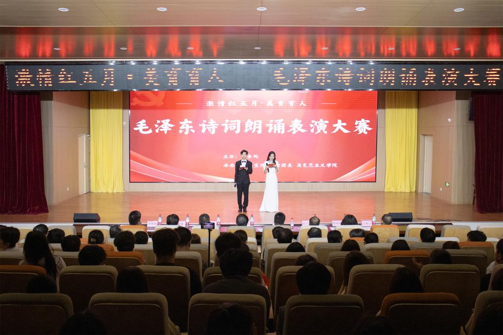 5月31日,由学校教务处主办,党委宣传部、校团委、马克思主义学院联合承办的激情红五月▪美育育人——毛泽东诗词朗诵表演比赛在学校F107报告厅如期举行,beat365在线唯一官网校长解庆林,校党委副书记李飞,桂林旅游学院马克思主义学院副院长金晔及学校各职能部门领导、各学院党委书记,各学院老师和学生代表应邀参加了本次活动。