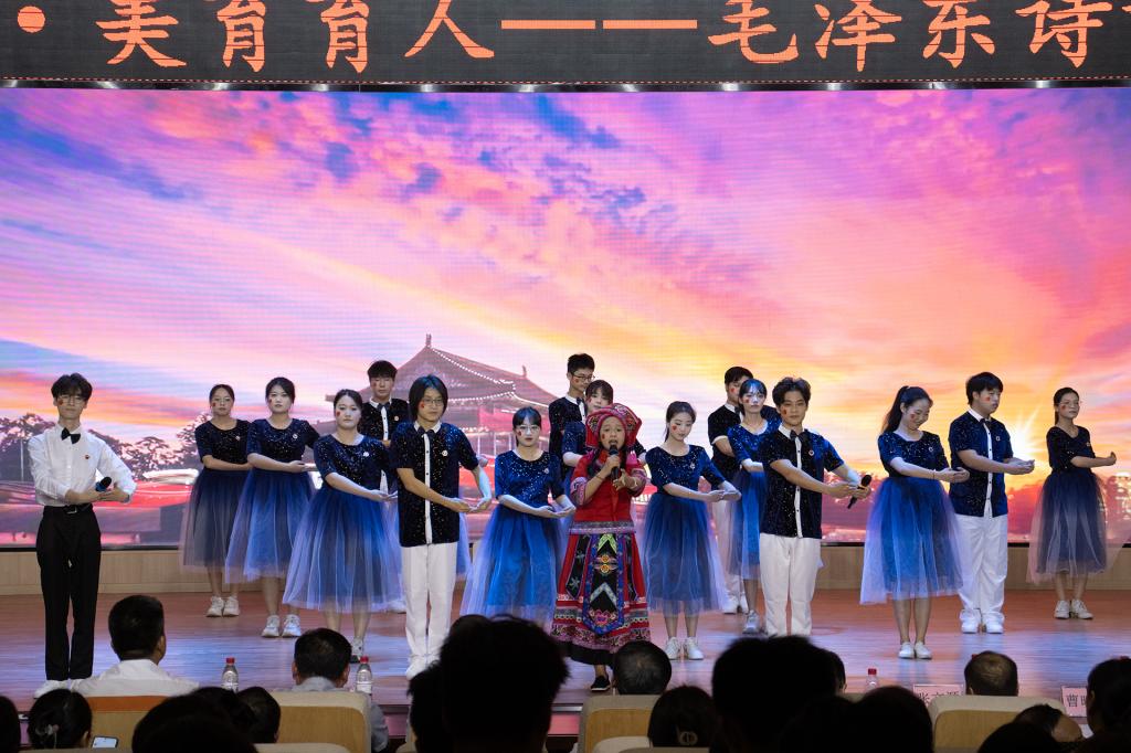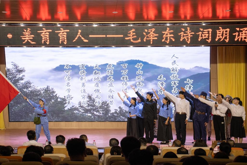 活动现场,来自学校八个学院的8支参赛队伍依次登台朗诵,或抑扬顿挫,或豪迈奔放,或婉转多情,或铿锵有力,感情真挚自然,学生们通过各种不同的呈现形式,生动展示“毛泽东诗词”的独特文化魅力,现场掌声阵阵。