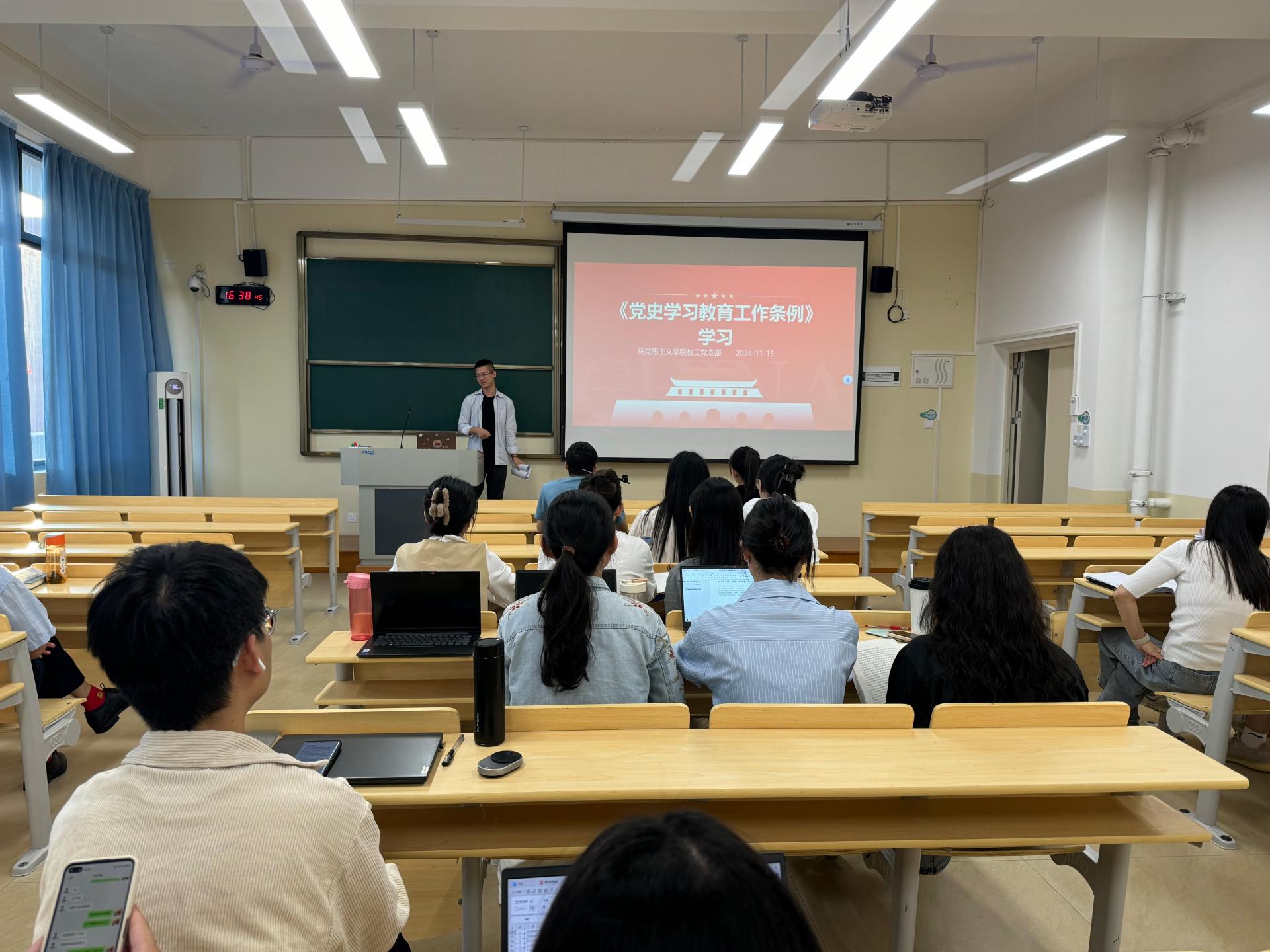 11月15日下午,为深入学习贯彻,马克思主义学院教工党支部全体党员教师在C514教室开展了《党史学习教育工作条例》主题学习。活动由党支部宣传委员姜凡老师主讲。
