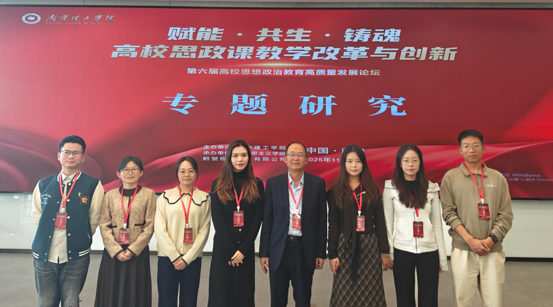 11月21-23日,beat365官网马克思主义学院组织董玉超、覃滟鸿等7名骨干教师赴南宁理工学院参加以“赋能·共生·铸魂:高校思政课教学改革与创新”为主题的第六届高校思想政治教育高质量发展论坛。