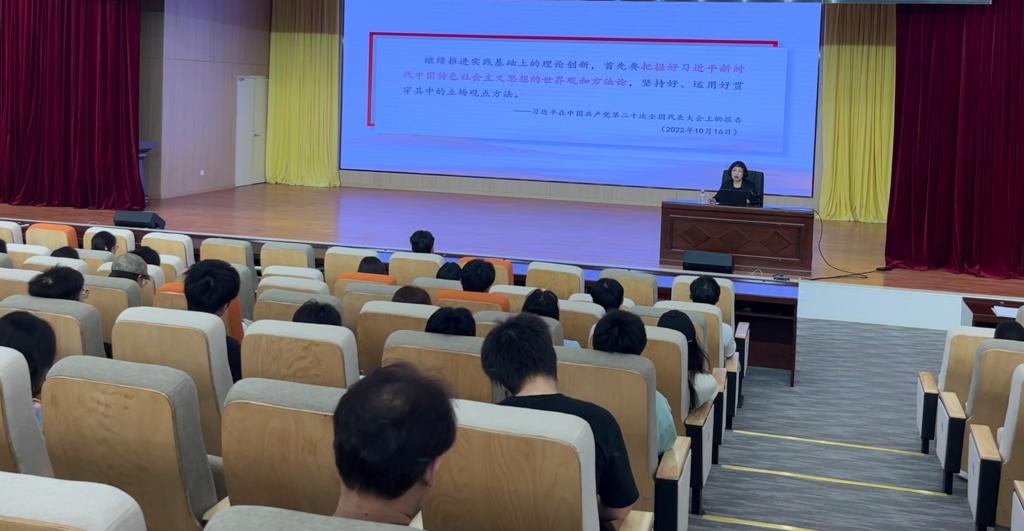 4月26日中午,马克思主义学院党支部书记曹晓莉在F108报告厅为全校党员发展对象讲了一堂题为“如何学好用好习近平新时代中国特色社会主义思想的世界观和方法论”的党课。曹晓莉书记从关于“六个必须坚持”的科学内涵、蕴含的道理学理哲理及结合大学生实际如何坚持好、运用好“六个必须坚持”等方面进行讲授。强调只有弄清楚“六个必须坚持”蕴含的道理学理哲理,才能更好领会习近平新时代中国特色社会主义思想的科学内涵、精神实质、实践要求,真正做到知其言更知其义、知其然更知其所以然。