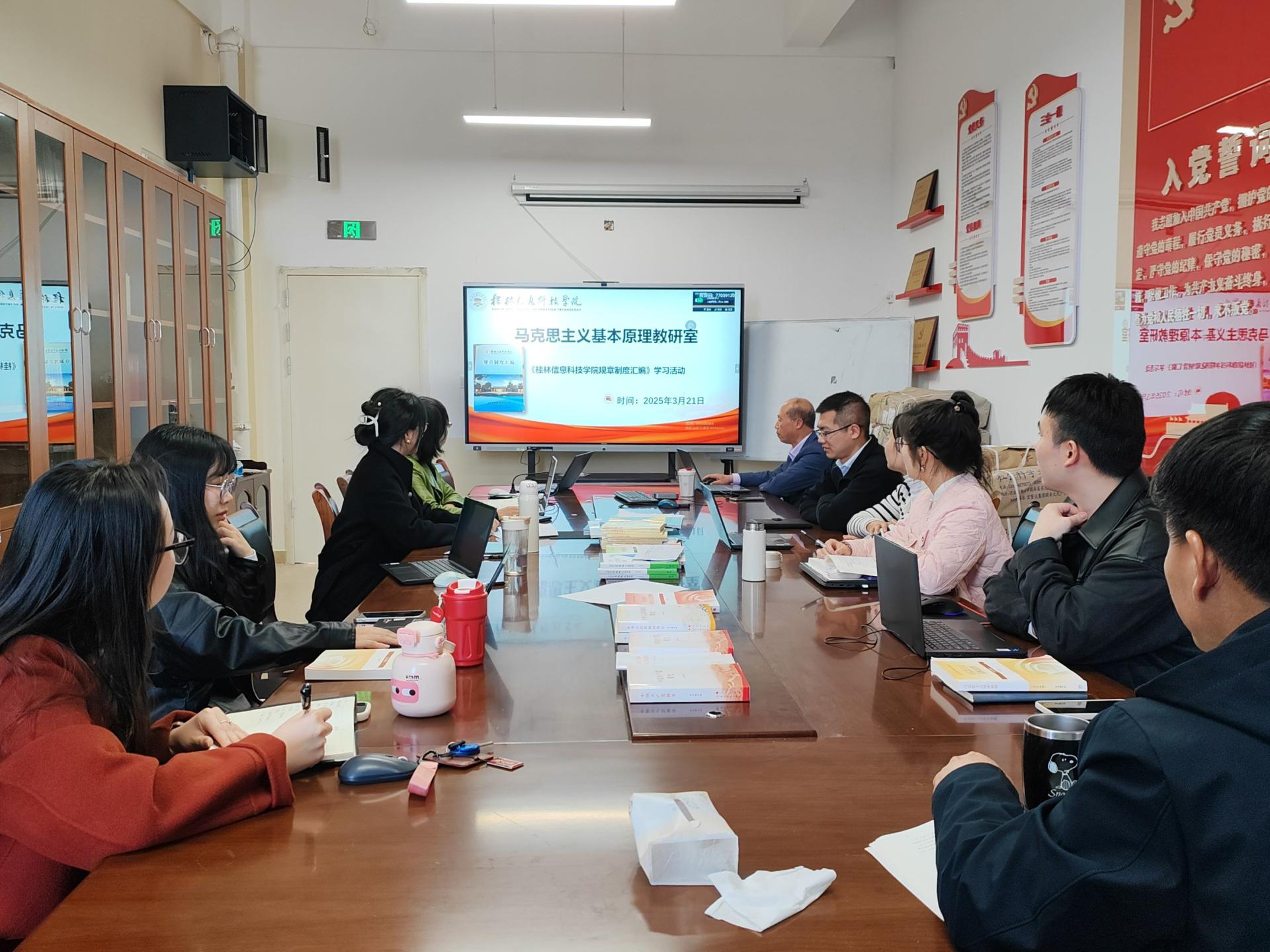 为深入推进“制度学习我先行”主题党日活动,马克思主义学院于3月15日至23日开展了一系列学习活动,旨在深化教职工对学校规章制度的理解,提升纪律意识和规范化工作水平。学院通过自学、教研室研讨和院会学习等多种形式,积极学习《beat365在线唯一官网规章制度汇编》,确保全体教职工在制度学习中走在前列。