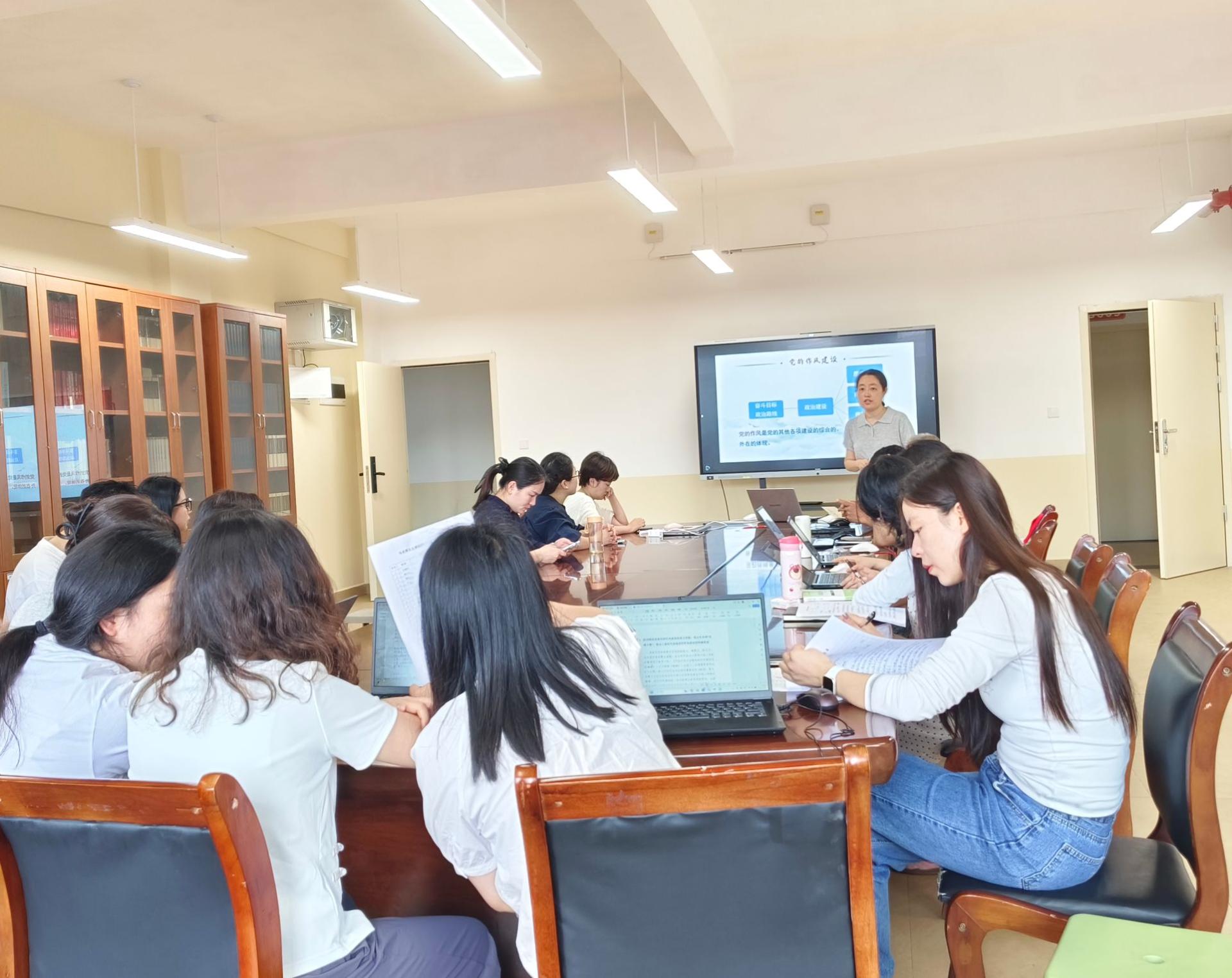 5月30日下午,马克思主义学院第三教工党支部书记李琳玲以《深入学习贯彻习近平总书记关于加强党的作风建设的重要论述和中央八项规定精神》为题,在G610教室为支部全体党员讲授专题党课,全体党员参加会议。