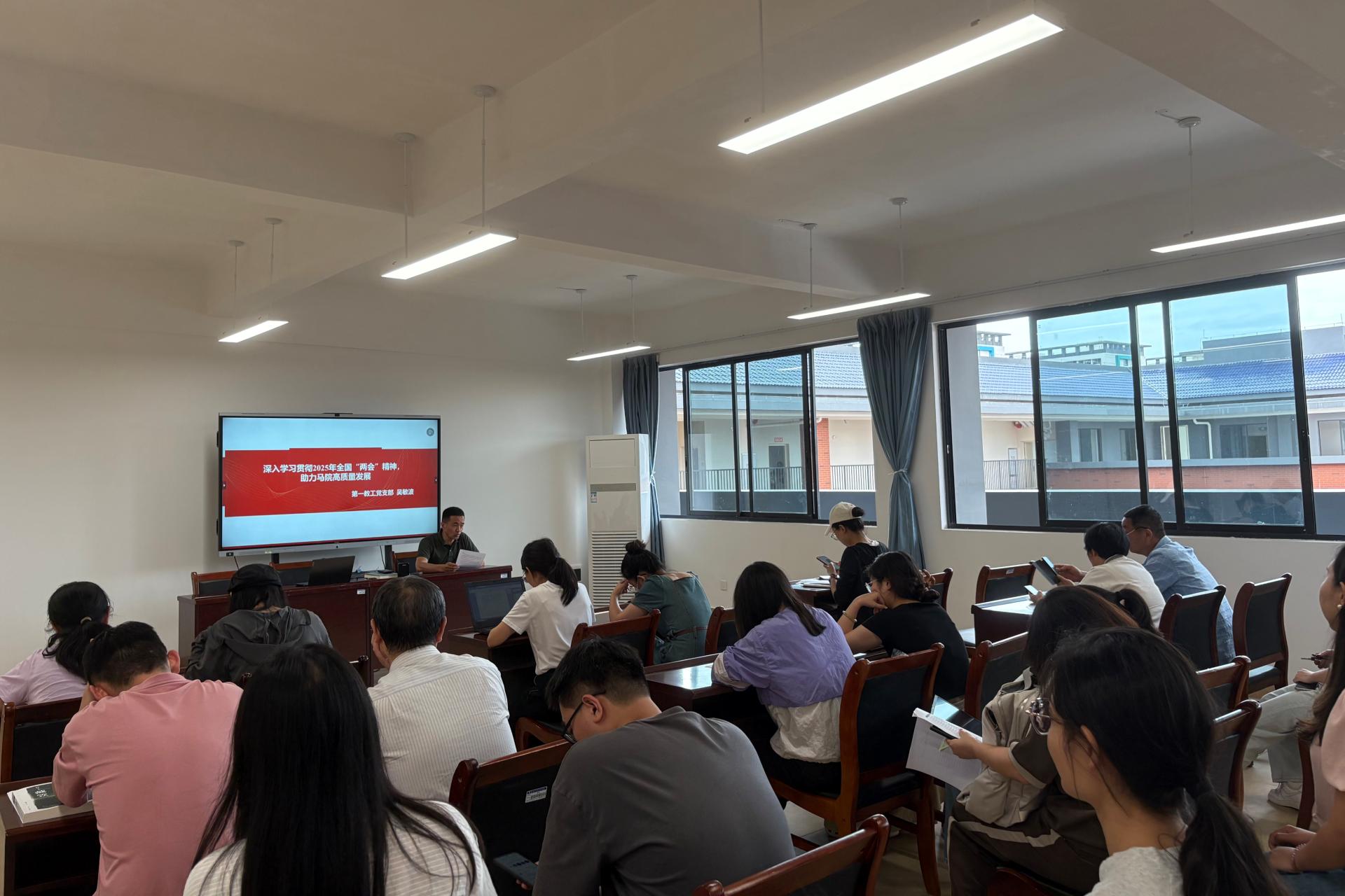 近日,马克思主义学院各教工支部分别开展了支部书记讲授专题党课活动。课程主题包括《深入学习贯彻2025年“全国两会”精神助力马院高质量发展》、《坚持党性原则,涵养清风正气》和《深入学习贯彻习近平总书记关于加强党的作风建设的重要论述及中央八项规定精神》等,全体党员参加了会议。