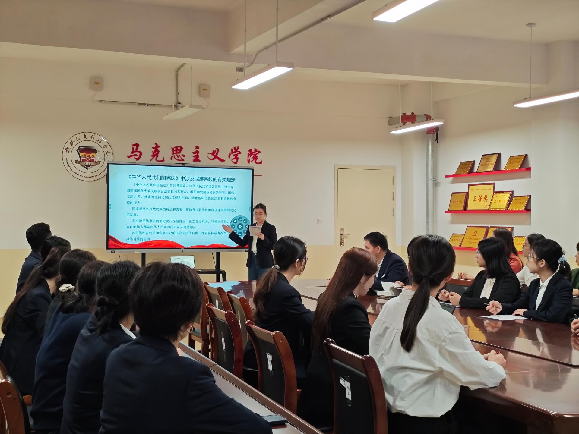 会上,李偲老师重点解读了《中华人民共和国宪法》《中国共产党统一战线工作条例》和《宗教事务条例》等涉及民族宗教的有关政策法规,强调党员教师要坚定马克思主义信仰,提升理论学习和风险防范能力,将铸牢中华民族共同体意识融入教学科研,切实落实立德树人根本任务。