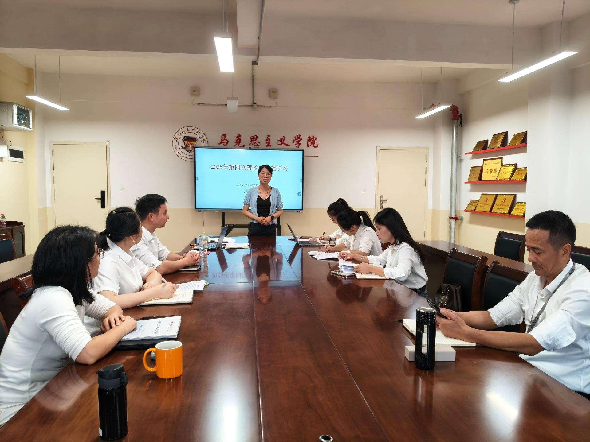 7月11日下午,马克思主义学院党总支理论学习中心组在G610会议室召开2025年第四次集中学习(扩大)会议,会议由党总支书记赵奕主持,党总支理论学习中心组成员、各党支部书记及组织员参加会议。