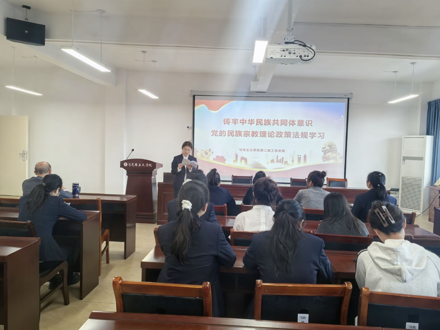 10月30日,马克思主义学院第二教工党支部在G605组织开展党的民族宗教理论政策法规专题学习,本次专题学习由石珂老师领学,支部全体党员教师参与。