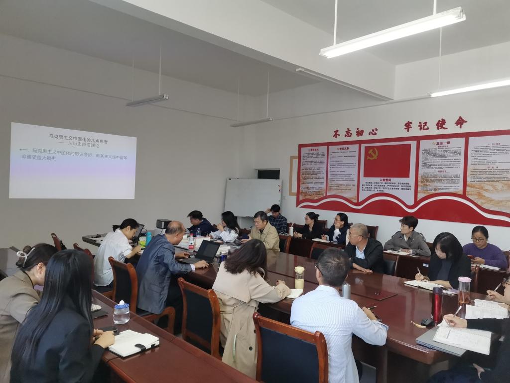 为了更好提升思政课教师的课程建设与思政课教学质量,共享教育教学经验,10月20日,马克思主义学院在52510会议室,组织开展第一期思政教师教学亮点交流分享会,由邱启照院长进行首次分享,马克思主义学院全体教师参加。