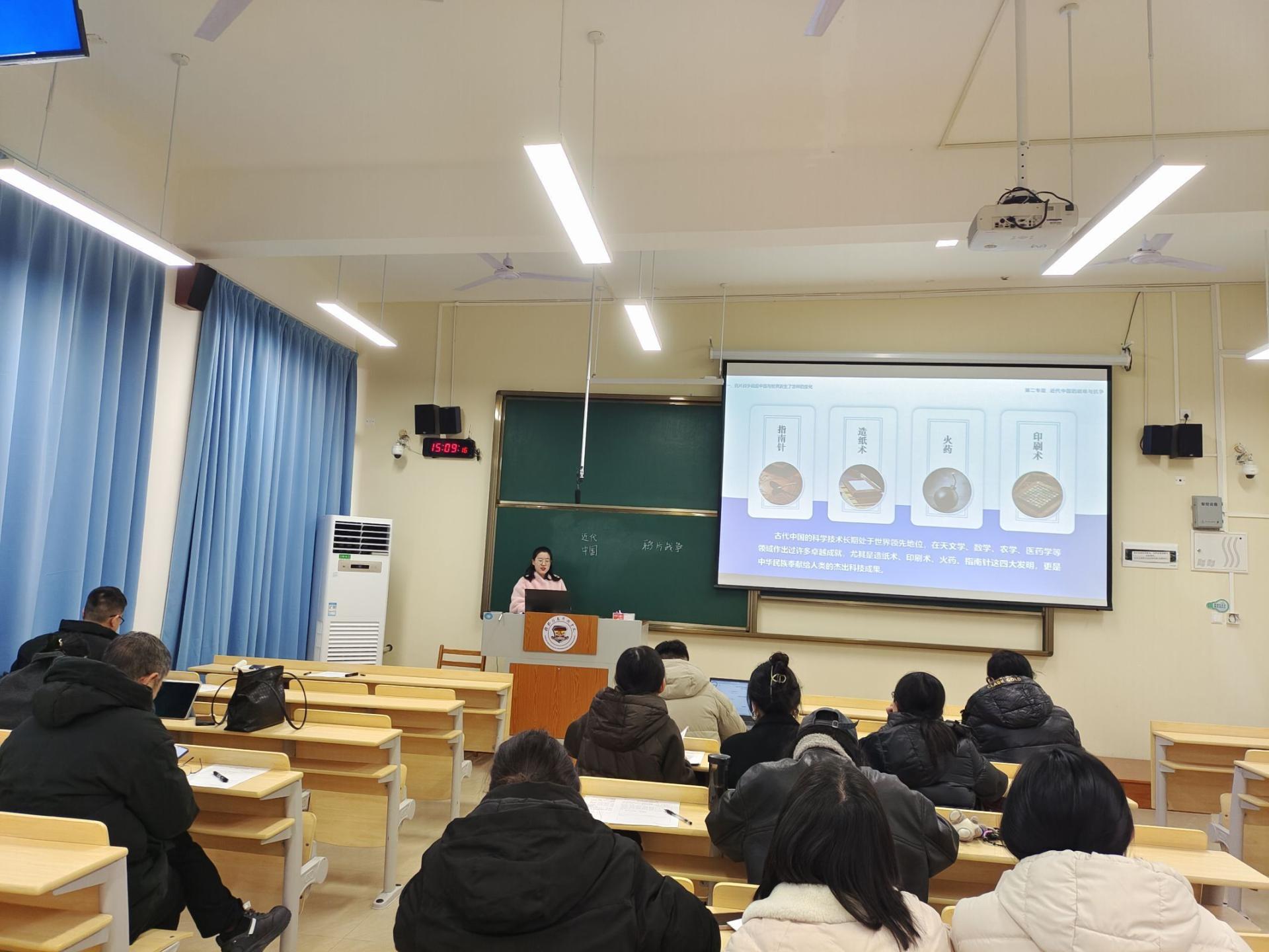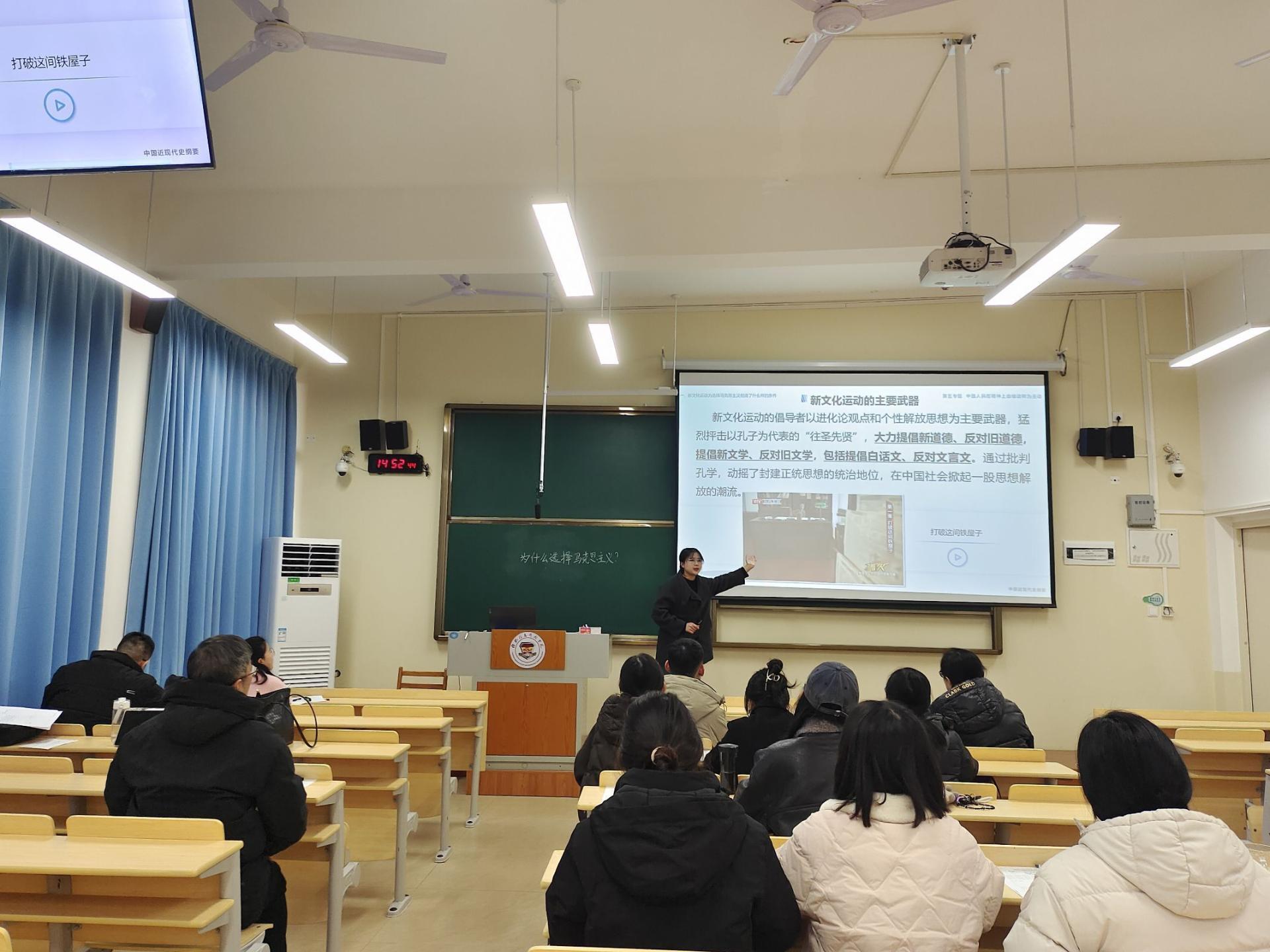 为贯彻落实新时代思政课建设要求,夯实青年教师教学基本功,2月13日,马克思主义学院《中国近现代史纲要》教研室于开课前组织开展新任主讲教师试讲评议活动。本次活动由教研室主任王硕主持,教研室全体教师全程参与评议。