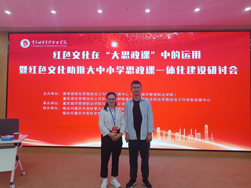 深入贯彻落实教育部关于全面推进“大思政课”建设的工作方案,推进红色文化资源助力“大思政课”建设的能力和效果,更好发挥思政课铸魂育人的作用。近日,马克思主义学院周丽、姜凡两位教师参加了由教育部高校思想政治工作创新发展中心主办,重庆城市管理学院马克思主义学院承办的红色文化在“大思政课”中的运用,暨红色文化助推大中小学思政课一体化建设研讨会。