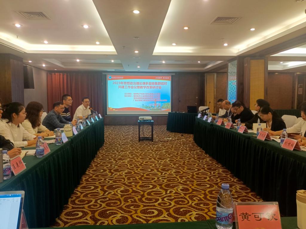 根据自治区党委教育工委、自治区教育厅《广西高校“思想政治理论课多层级集群结对共建大行动”实施方案》工作安排,为加强集群结对共建各院校沟通交流,相互学习,10月30日上午,由桂林电子科技大学马克思主义学院牵头组织开展思想政治理论课多层级集群结对共建院校系列交流活动,活动在桂林百悦酒店二楼两广馆举行。beat365官网马克思主义学院、桂林航天工业学院马克思主义学院、广西水利电力职业技术学院马克思主义学院领导、教研室主任和骨干教师共三十余人参加此次研讨会。
