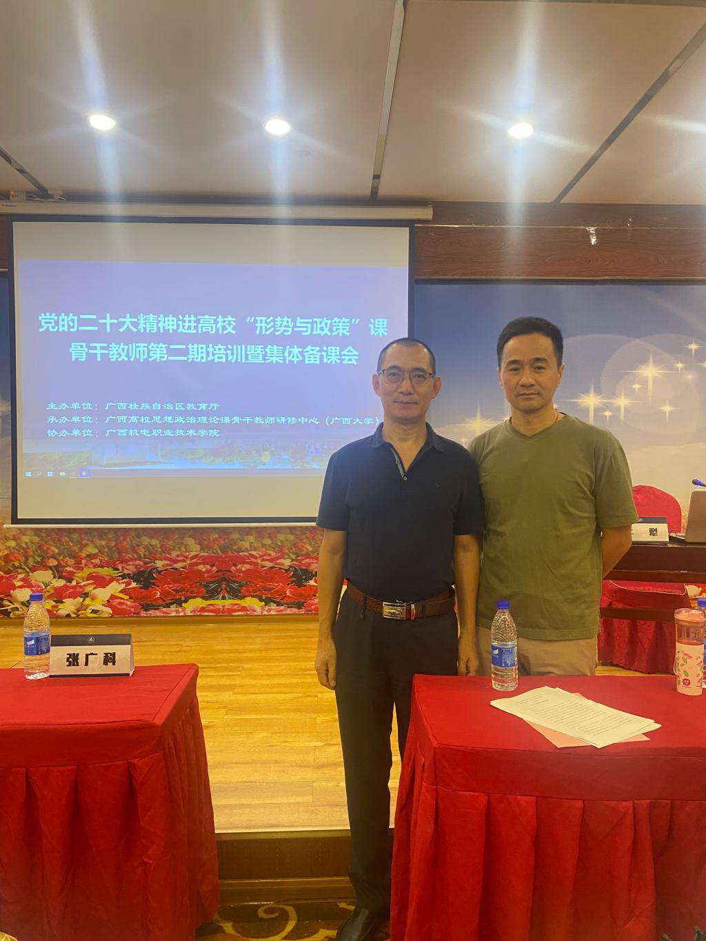 10月27日至30日,马克思主义学院王贻正、吴敏波2位老师参加了由广西壮族自治区教育厅主办、广西高校思想政治理论课教师培训研修中心(广西大学)承办、广西机电职业技术学院协办的“2023年第二期全区高校‘形势与政策’课骨干教师培训暨集体备课会。