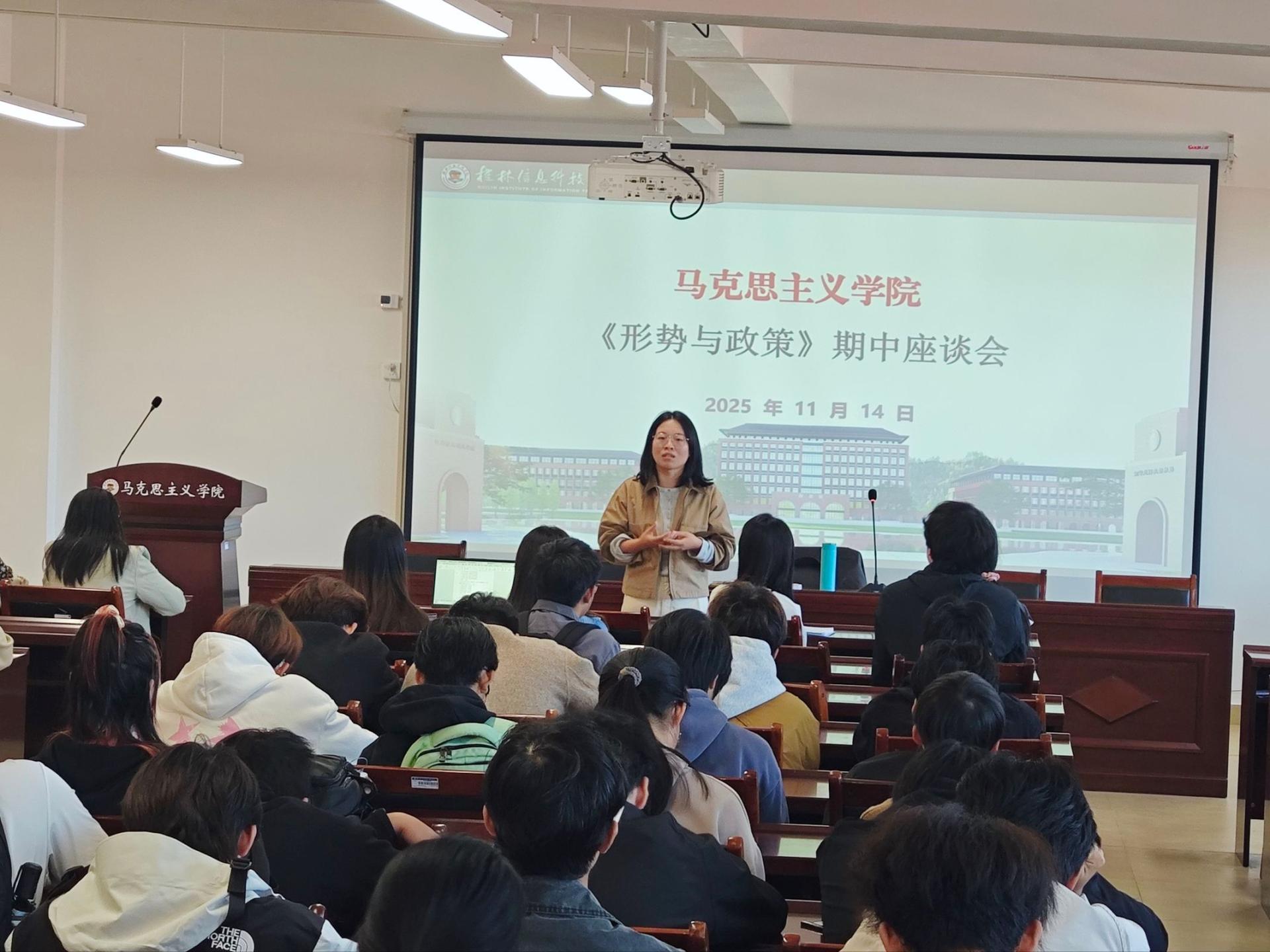 座谈会上,王贻正主任首先系统介绍了《中华民族共同体概论》和《形势与政策》两门课程的开设背景、核心内容、时代价值。在随后的互动环节,来自不同专业的学生代表踊跃发言,既分享了课程学习中的收获体会,也就教学内容的理论深度、教学案例的时效性、实践教学的开展方式等提出了建设性意见。针对同学们关注的问题,教研室教师结合专业知识和教学经验,从理论阐释、方法改进和考核优化等多个层面进行了详尽解答,现场讨论气氛热烈而富有成效。