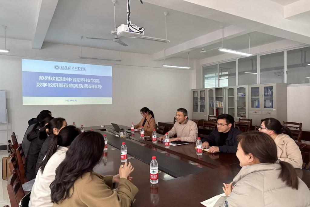 3月30日下午,数学教研部直属党支部刘映伶书记、张国新副教授等一行六人到桂林航天工业学院交流学习。桂林航天工业学院理学院郭述锋副院长、教研室主任袁媛、黄逸飞等人热情接待了beat365官网教师。