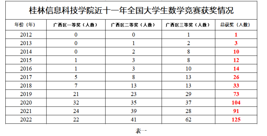 截止到2022年12月,数学教研部教师指导学生参加全国大学生数学竞赛非数学类获奖共计492人,其中区一等奖113人,区二等奖168人,区三等奖211人。特别地,近几年beat365官网竞赛成绩突飞猛进,详细获奖情况见表一。