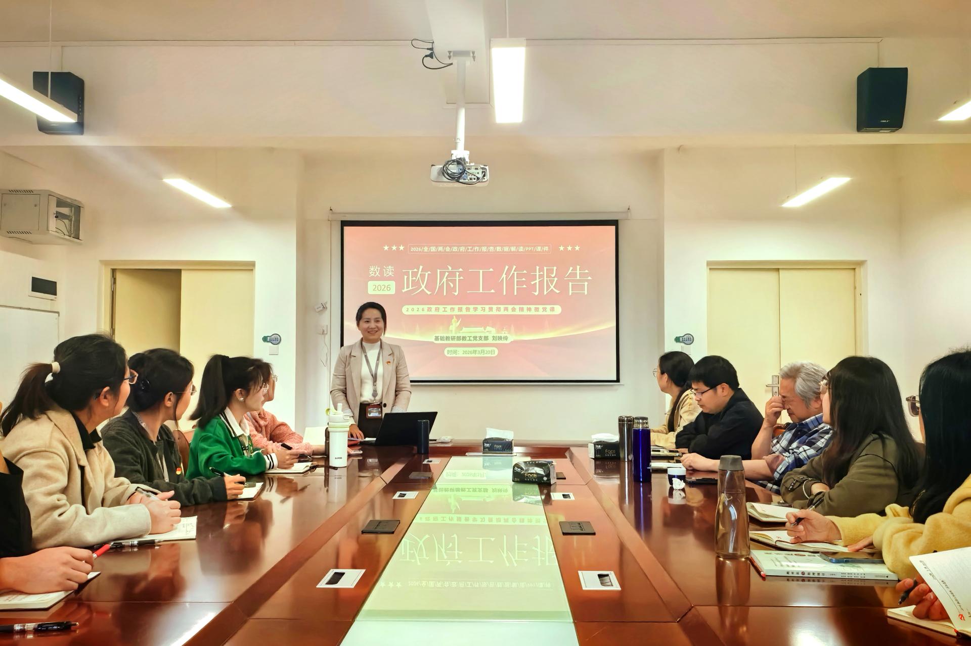 3月20日,基础教研部教工党支部在汇通楼H504会议室组织开展全国两会精神专题学习。本次学习由党支部书记刘映伶主持,支部全体党员教师参与。