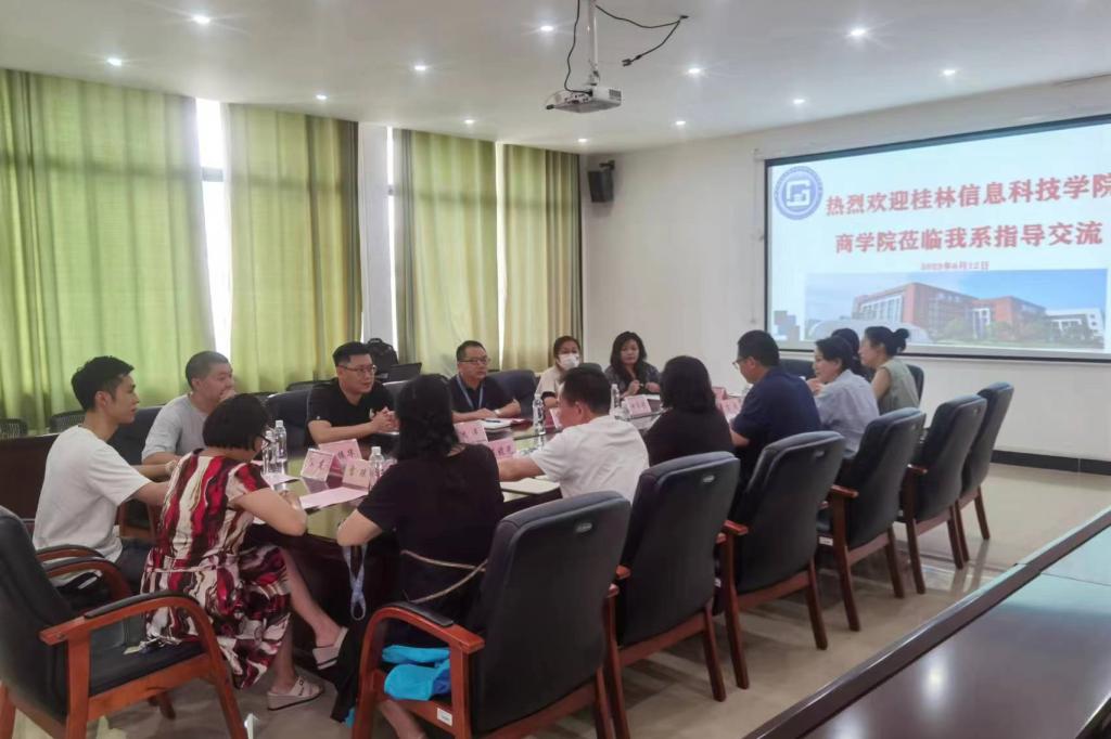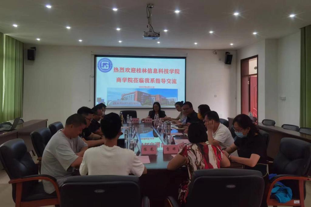 6月12日下午,商学院副院长(主持工作)罗志明和院长助理沈洋带领各教研室主任、副主任一行7人赴桂林师范高等专科学校经济管理系就专业建设发展举措、人才培养方案设计、校企合作体系构建、外聘师资管理、产业学院建设等方面进行了深入交流。