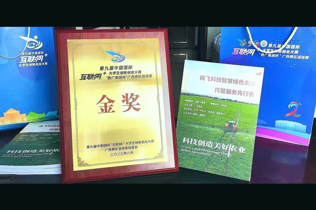 第九届中国国际“互联网+”大学生创新创业大赛“数广集团杯”广西赛区选拔赛由广西壮族自治区教育厅、自治区党委统战部、自治区党委网信办、共青团广西区委等13个单位共同举办的高层次学科竞赛。作为深化创新创业教育改革的重要载体和平台,集中展现蕴含在青年学生中的创新创业力量,是高校深入实施创新驱动发展战略、走自主创新道路的新探索,是高校科研水平、教学水平、协同育人效果、社会服务能力的综合反映,是促进大学生更高质量就业创业的重要动力。在校长助理韩剑的带领下,校内导师沈洋、严宗光、罗志明、谢如欢、王玮琪、奉燕、周阳霖等和校外导师陈莉等的共同指导和支持下,尚飞科技项目负责人尚金成及全体成员不断努力,获此佳绩。