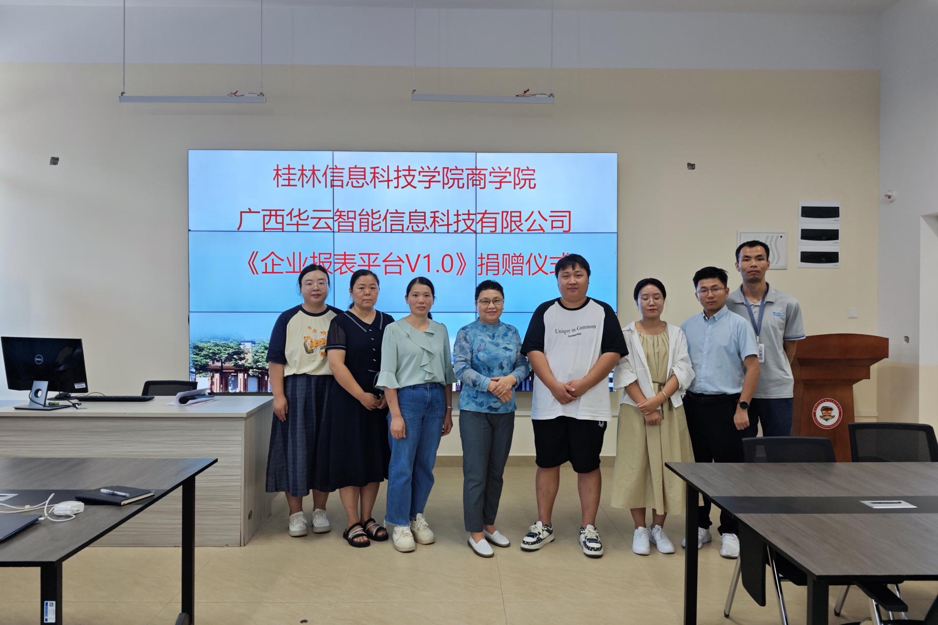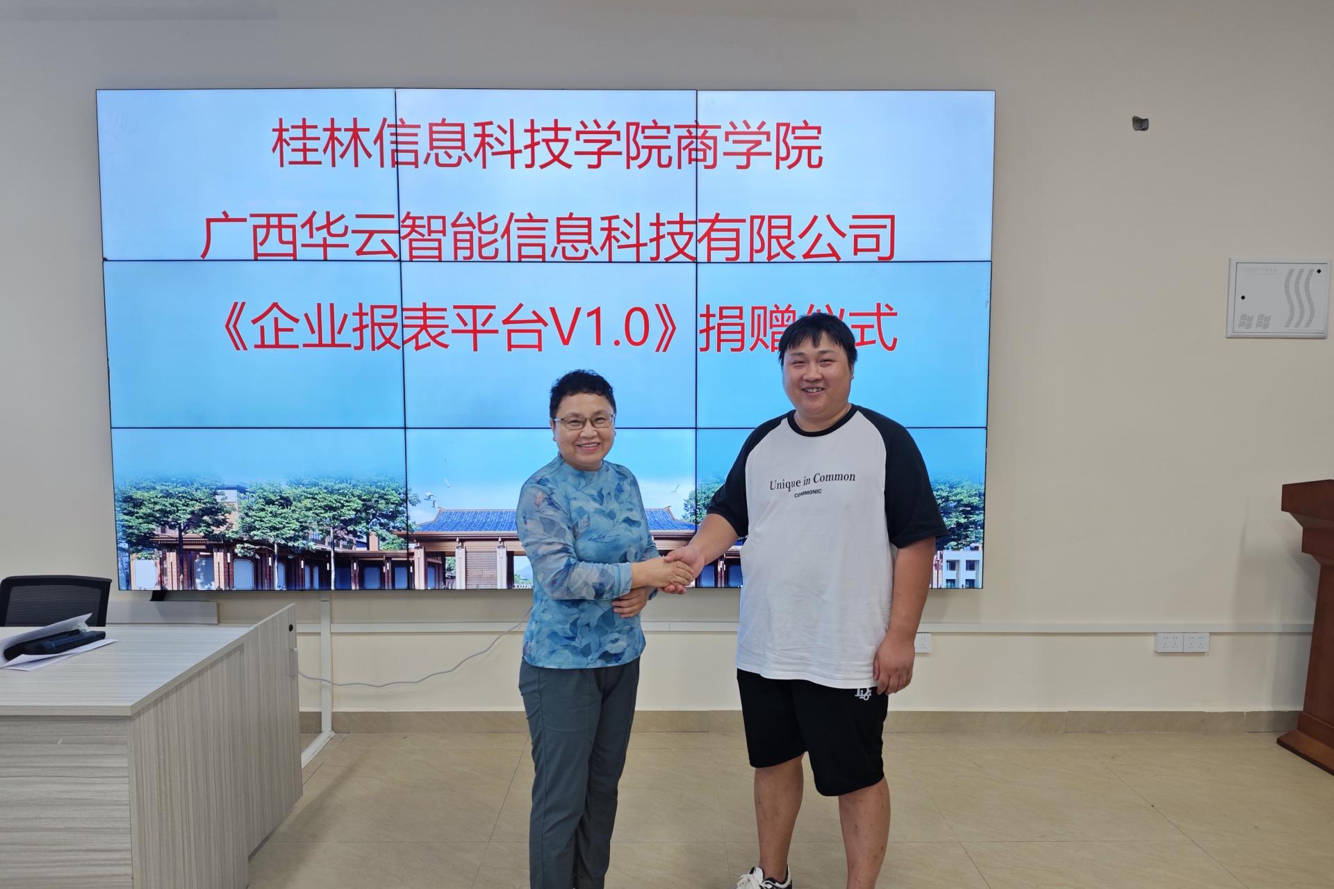 2024年9月13日上午,beat365在线唯一官网商学院与广西华云智能信息科技有限公司在财务管理实验室举行了《企业报表平台V1.0》捐赠仪式,并对学院教师进行了专业培训。这次合作旨在通过先进的技术手段提升学院教师教学水平,为学院师生提供更加实用的学习工具。捐赠仪式上,双方共同签署了《企业报表平台V1.0》捐赠协议,标志着双方正式达成战略合作关系。