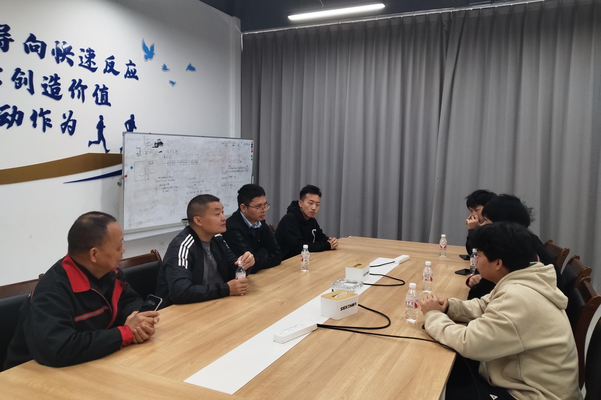在鑫可传动的调研中,鑫可传动党支部书记黄建华、嘉兴大学G60研究院产业人才中心主任吕忠炜和我院“3+1”联合培养学生举行了会谈。黄书记对在岗的工业工程专业实习生给予了充分的肯定,并希望同学能沉下心在岗位上运用所学专业知识去解决岗位工作中遇到的难题,不断提升自己的专业知识应用水平。张院助以14级优秀毕业生黄镭同学的车间工作经历鼓励大家,脚踏实地做好每一件小事,终能成大事。戴欧阳老师就职业生涯规划上和同学们进行了交流,建议同学们能在职业工作中设立阶段目标,并为之努力。在和同学们的座谈会后,黄书记、吕主任和我院教师团队就目前就业形势、人才培养、岗位人才招聘等话题展开了深入的交流。