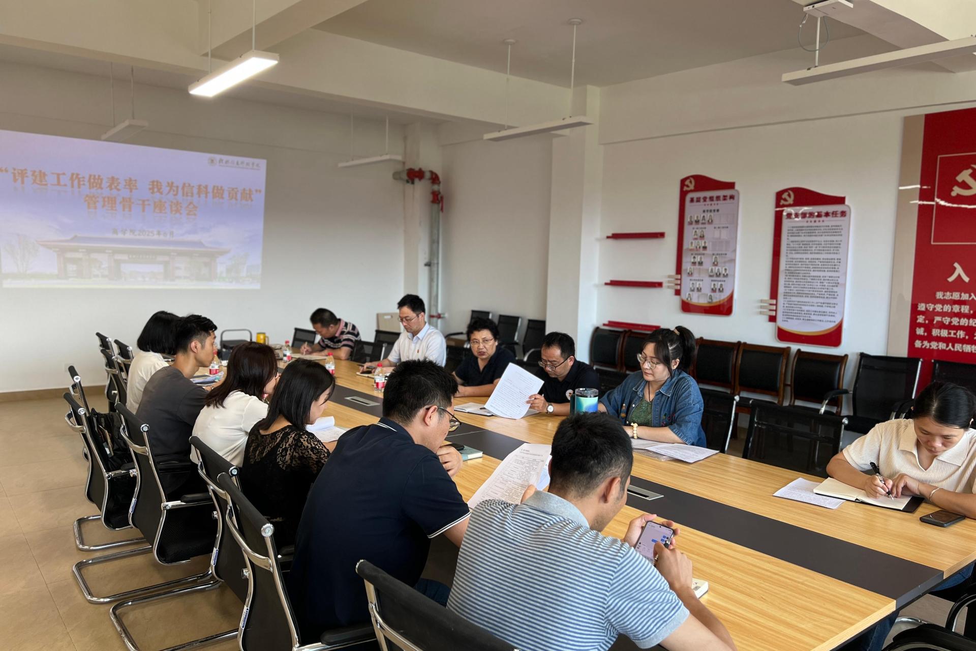 6月25日,商学院在H612会议室召开“评建工作做表率 我为信科做贡献”管理骨干座谈会,学院领导班子、各专业教研室主任参会,共商评建关键任务,凝聚发展合力。