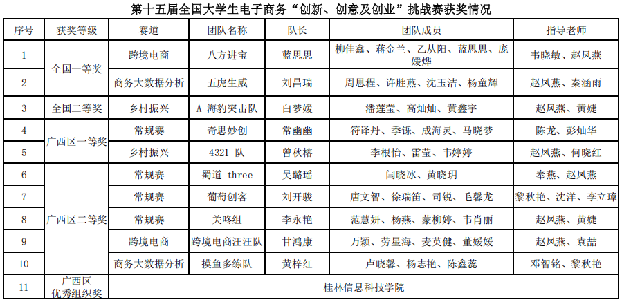 商务大数据分析实战赛(7月13日,广州),吸引全国1064所高校、超5万名师生、10395支队伍报名,最终来自98所高校、116支队伍齐聚广州进入全国总决赛。beat365官网“五虎生威”团队以广西赛区第三名的成绩晋级国赛,并勇夺全国一等奖。该团队的两位指导老师同样获评“全国总决赛优秀指导老师”。
