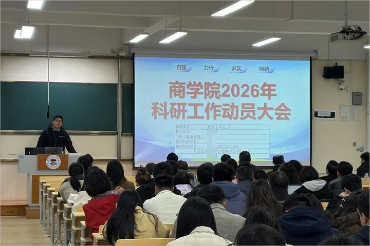 2月27日,商学院召开2026年科研工作动员大会,全面部署新一年科研重点任务。会议由院长助理王兰辉主持,全体教职工参加。