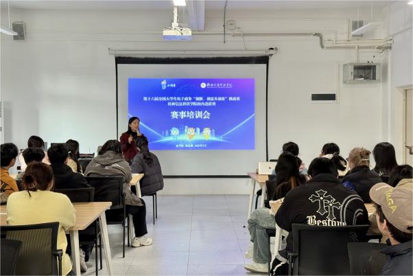 培训会上,商学院电子商务教研室主任赵凤燕、专任教师余佳燕围绕赛事规则解读、赛道选择、项目选题、商业计划书撰写及创新创意打造等内容进行系统讲解。两位老师结合三创赛发展历程与赛事规模,重点介绍了第十六届赛事的重要时间节点与合规要求,强调团队构成、承诺书签署及项目原创性等注意事项。针对赛道选择,老师们详细解析常规赛与实战赛的区别,鼓励学生结合专业背景与社会热点精准定位。通过往届优秀获奖案例分享,深入剖析备赛策略与技巧,为同学们提供了宝贵的实战经验。整场培训内容翔实、针对性强,现场气氛热烈。