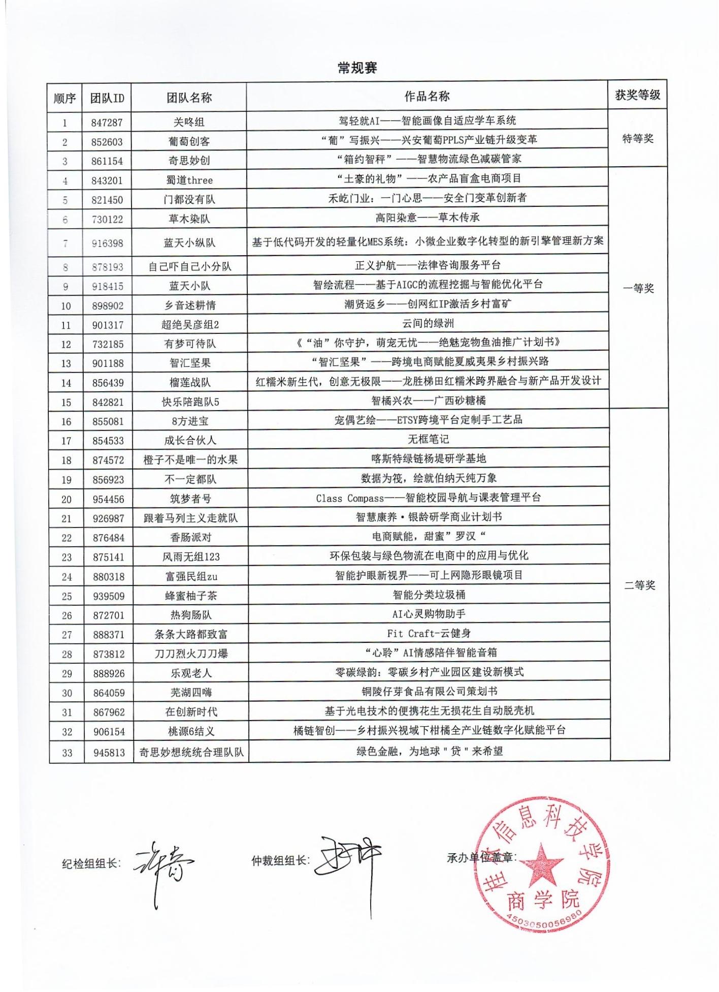 根据第十五届全国大学生电子商务“创新、创意及创业”挑战赛校内选拔赛的通知要求,经网络评审和现场评审答辩,现将获奖等级及排名予以公示,公示期为5个工作日(2025年4月24日—4月30日)。