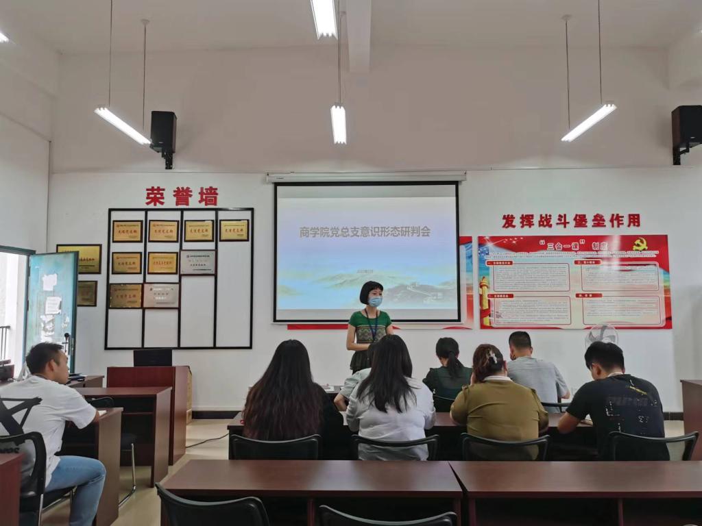 9月19日,商学院党总支在11501党员活动室组织召开意识形态专题研讨会,商学院党总支全体总支委员、各党支部书记、通讯员等参加学习会议,会议由商学院党总支书记赵奕主持。
