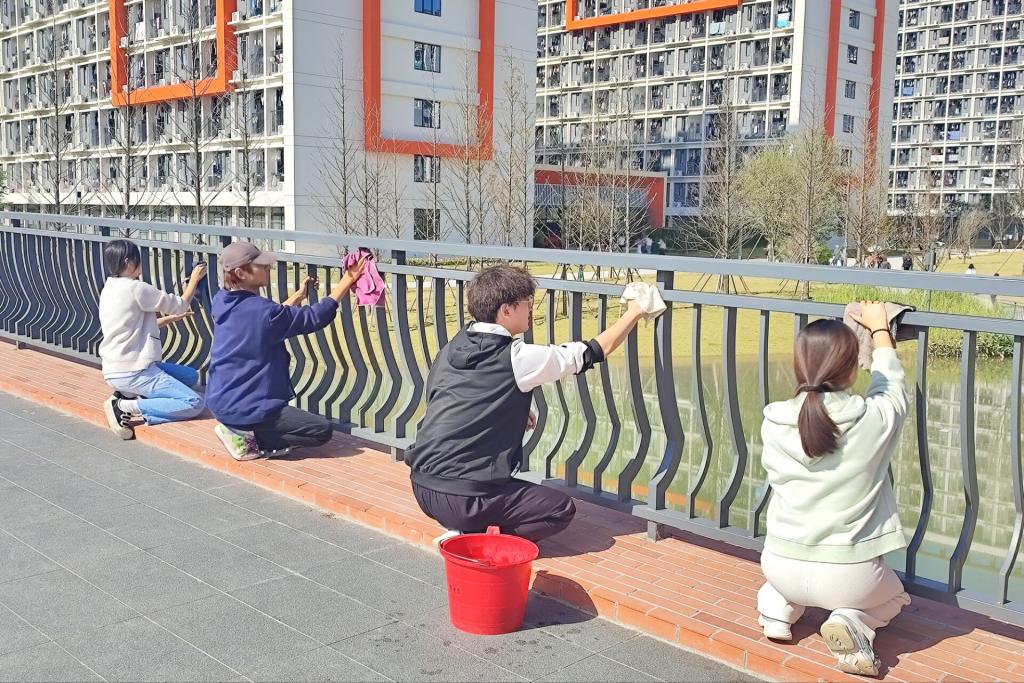 12月8日,商学院党委联合学校后勤开展的“我为师生办实事”义务劳动实践活动在学校博雅桥顺利进行,学院师生党员代表参加活动。