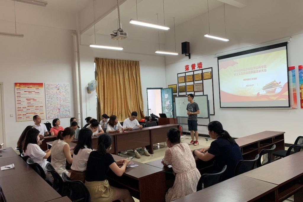 6月21日,商学院教工党支部在11501党员活动室开展党支部委员改选工作。本活动由教工党支部副书记陈龙同志主持,全体党员教工参加。