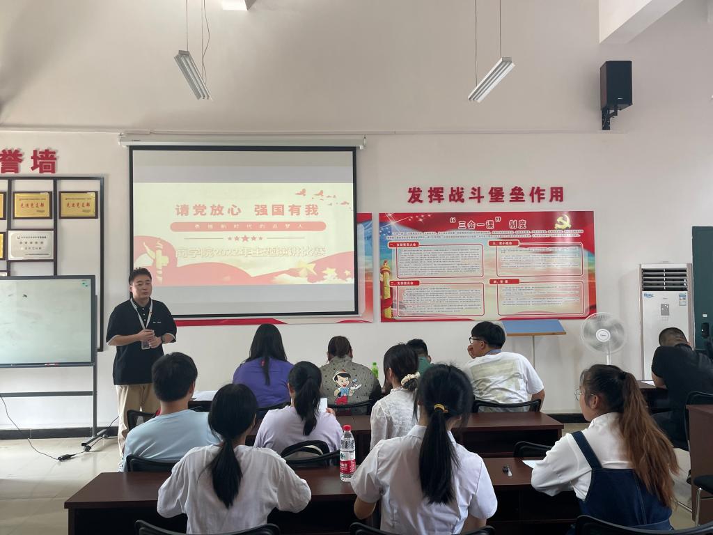 为深入学习宣传贯彻党的二十大精神,激发大学生青春之志、抒发爱党爱国之情,引导大学生自觉将“小我”成长融入“大我”奋斗,将人生选择与中华民族伟大复兴中国梦相结合。11月11日,商学院于11501党员活动室组织开展“强国有我 请党放心”主题演讲比赛,各年级辅导员担任评委。