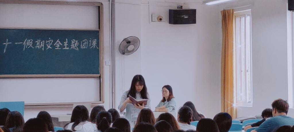 “十一”假期来临之际,为严格按照疫情期间学院学生安全稳定工作要求,加强安全教育宣传力度,管理系于9月29日组织各年级同学在22105教室召开“十一”假期前安全教育主题团课,各年级辅导员作为主讲人,管理系全体同学分批参加。