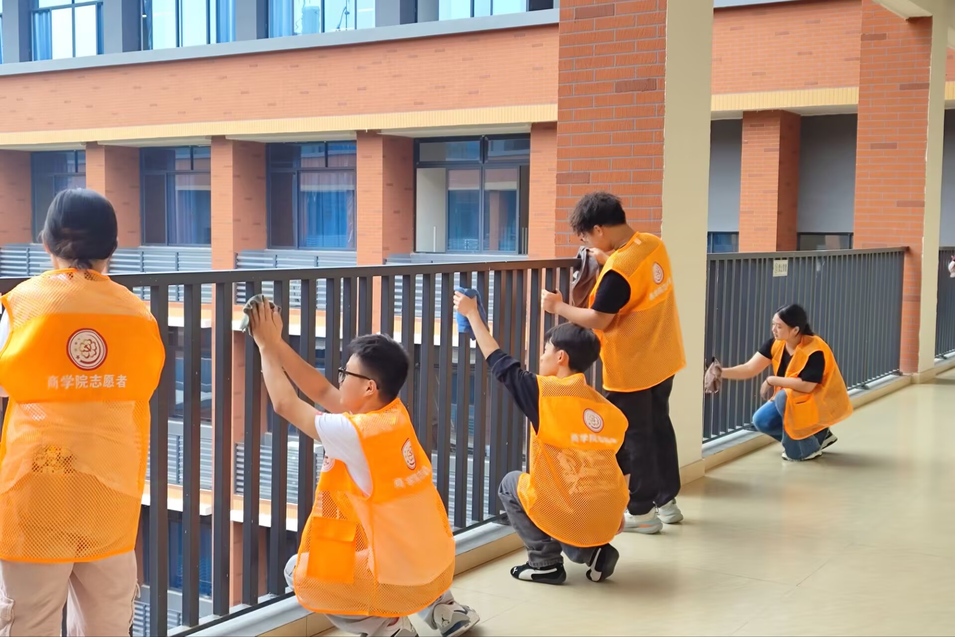 为积极响应党的号召,弘扬志愿服务精神,增强入党积极分子的社会责任感和实践能力,10月17日,商学院党委联合学校后勤部门在德远楼开展了入党积极分子“美化校园”志愿服务活动。此次活动的主要任务是擦拭教学楼内的扶手和窗户,用实际行动为师生营造一个更加整洁、明亮的学习生活环境。