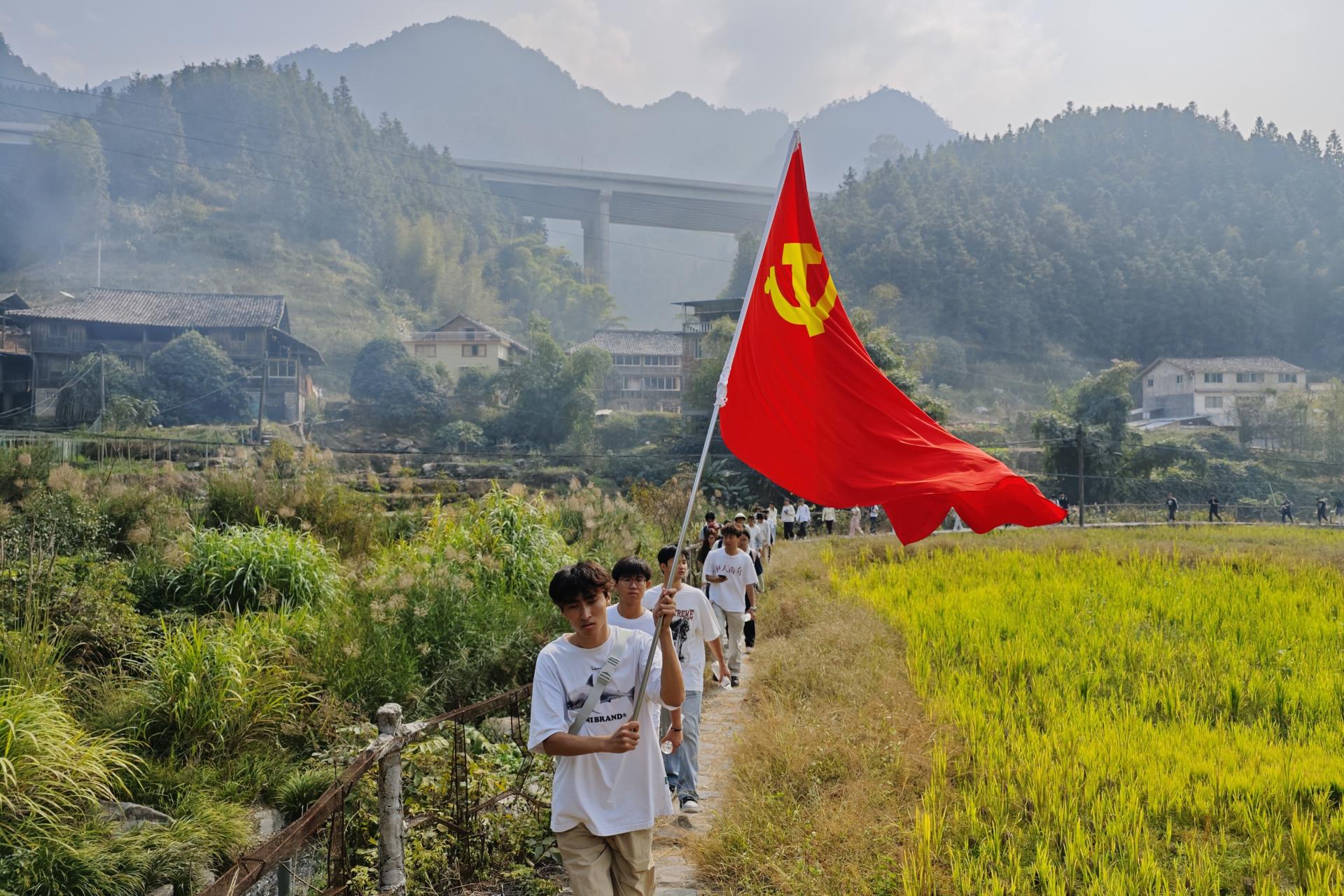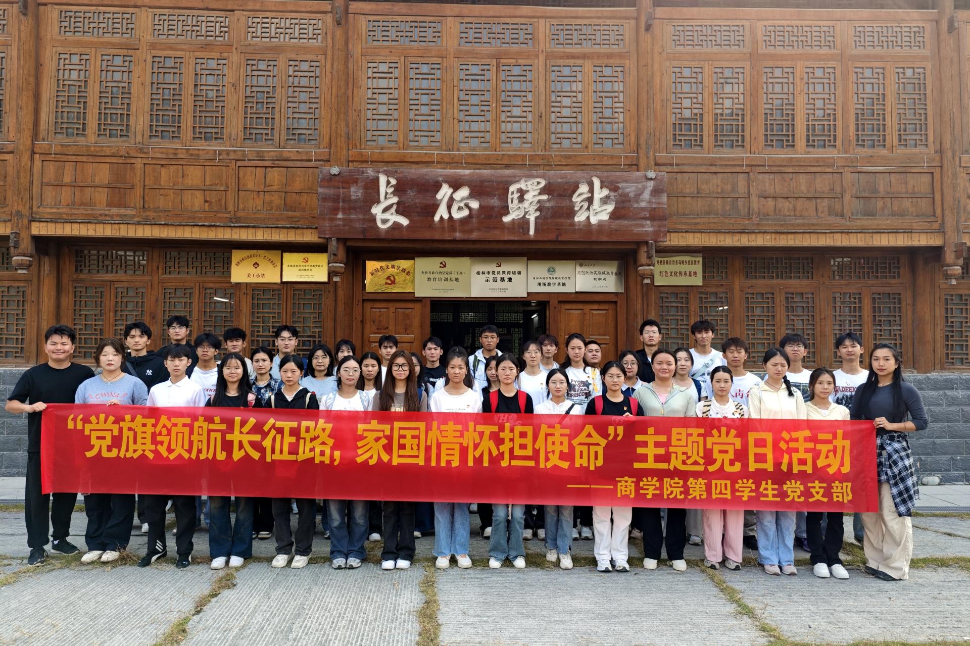为缅怀革命先辈,传承长征精神,感悟中国共产党的初心使命,11月16日,商学院第四学生党支部前往龙胜县马堤乡万人界长征体验区开展“党旗领航长征路,家国情怀担使命”主题党日活动。本次活动由支部书记徐冉老师带队,全体师生党员参与。