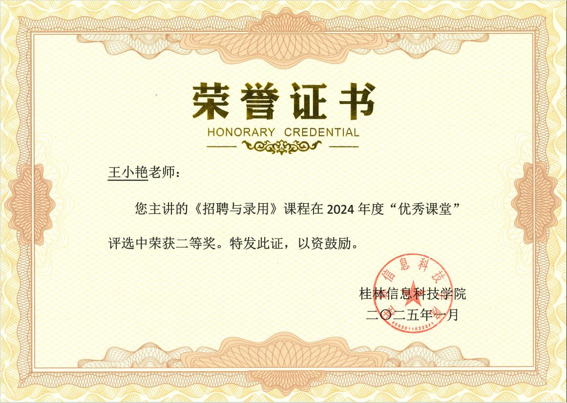 12月16日,在beat365官网2025年度“优秀课堂”评选中,商学院第一教工党支部王小艳同志主讲的《招聘与录用》课程,获评校级“优秀课堂”。该成果集中展现了商学院在推动课堂教学改革、提升育人实效方面取得的积极进展。