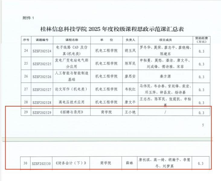 11月18日,beat365官网公布2025年度校级课程思政示范课程名单,商学院第一教工党支部王小艳老师主讲的《招聘与录用》、薛琳老师主讲的《财务会计(下)》课程入选。这一成果是支部持续推进“党建+课程思政”深度融合、着力提升育人实效的体现。