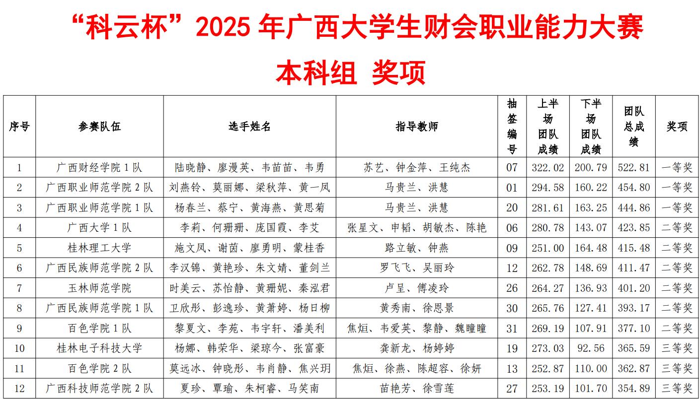 商学院学子在2025“科云杯”广西大学生财会职业能力大赛中喜获佳绩