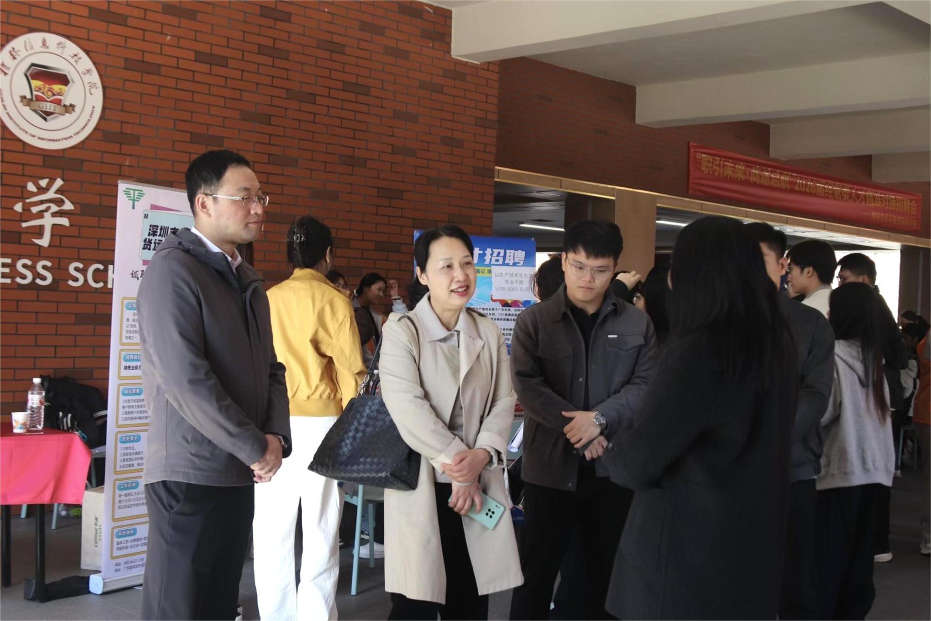 为积极应对当前就业形势,全力保障2026届毕业生高质量充分就业,11月22日,“职引未来 商途启航”2026届经管类毕业生专场招聘会在学校汇通楼举办,共计300余人参加此次招聘会。学校副校长罗捷莅临现场指导,学院领导许奇、罗志明、梁梦良及2026届毕业生辅导员参加活动,与企业、学生面对面交流,为学生求职提供全方位支持。