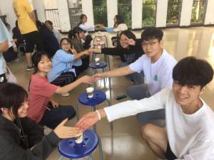 本次团辅活动由“我看你笑”,“诗词表演”“水上传球”“抢纸杯”等多个项目组成.各部员之间配合默契、携手共进。各部门干事之间也彼此了解。此次团辅活动圆满完成。