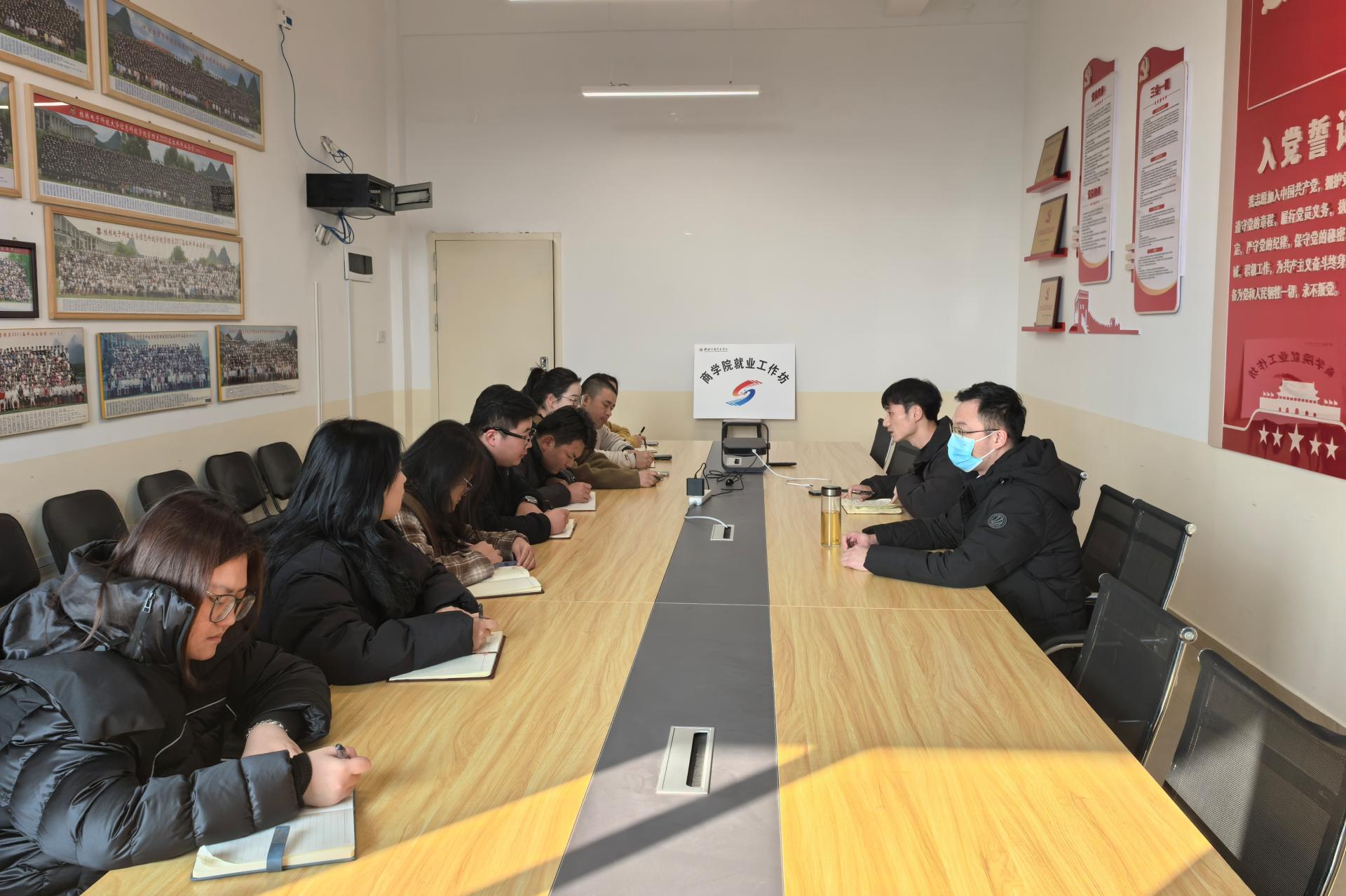 为扎实推进2025届毕业生就业工作,精准部署下一阶段重点任务,12月31日下午,商学院在F504会议室召开就业工作坊第五次研讨会。学院党委书记许奇、学工办负责人和全体毕业班辅导员参加会议。