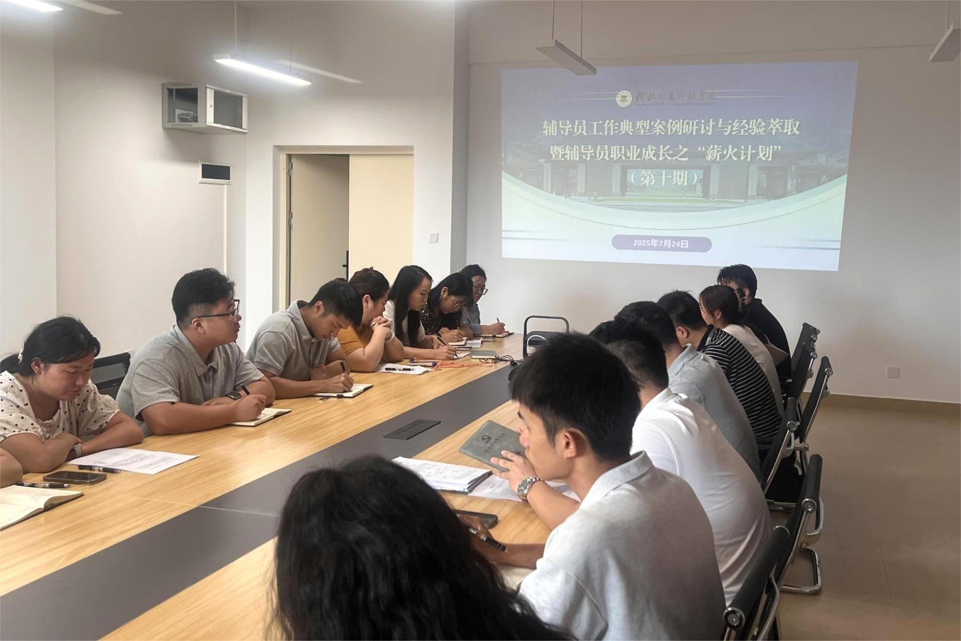7月24日,商学院学工办在H612会议室开展辅导员职业成长之“薪火计划”(第十期),专题研讨学生工作典型案例。学院党委书记许奇、副书记梁梦良及全体辅导员参会,共同探索学生工作案例的破题之道。