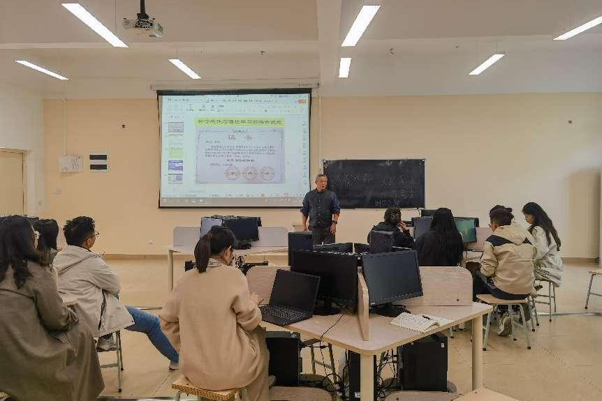 紧接着,秦教授详细阐述了“教学科研化”与“科研教学化”的理念。他强调,这两者并非简单的互换,而是相互融合、相互促进的过程。秦教授展示了对偶思维的几种观点,如“感性知识理性化和理性知识感性化”、“制造服务化和服务制造化”、“财聚人散和财散人聚”、“同分异构和异质同构”等,并运用各类实践案例指导现场教师如何贴近广西和桂林的实际开展教学与科研,将看似对立的元素在教学与科研中有机结合,从而创造出新的价值。在讲座的后半部分,秦教授特别强调了利用先进软件工具提升教学效果的重要性。他介绍了一些在教学和科研中常用的软件工具,如数据分析软件、在线教学平台等,并分享了如何有效地利用这些工具来提高教学和科研效率。