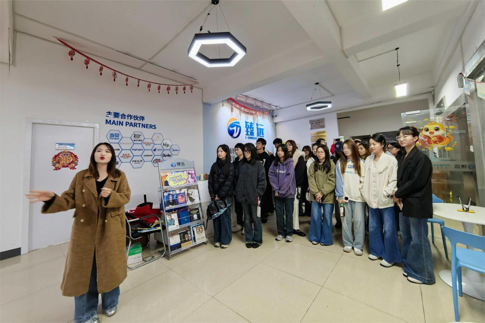 为进一步推进实践教学改革,帮助学生提前建立行业认知、明晰职业发展方向,11月4日,电子商务教研室主任赵凤燕与专任教师路博文,带领22级电子商务专业学生赴桂林臻远电子商务有限公司开展访企研学活动,搭建理论与实践深度融合的学习桥梁。